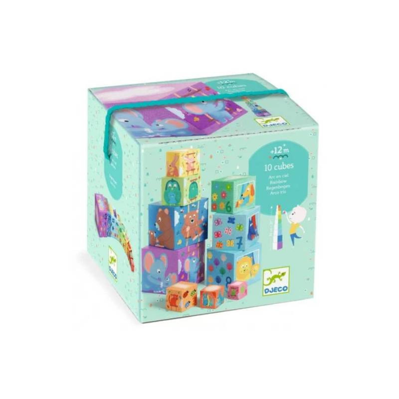 Djeco Jogo Blocos para Empilhar Arco-Íris +12M é um jogo composto por 10 blocos feitos de cartão espesso, para bebés a partir dos 12 meses.