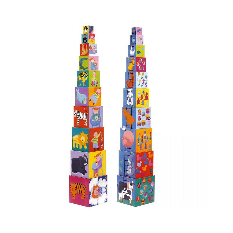 Djeco Cubos para Empilhar Divertidos é um brinquedo de contrução é altamente educacional, desenvolve habilidades motoras e de combinação, ajuda a aprender palavras e nomes de objetos e a contar.