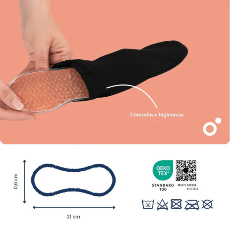 DOOMOO Calmy: almofada de gel pós-parto com formato ergonómico. Usa frio para alívio de inchaço, episiotomia, hemorróidas e seios; calor para cãibras, cólicas e descida do leite. Inclui 5 capas descartáveis e 2 de algodão laváveis. O conforto que mereces.