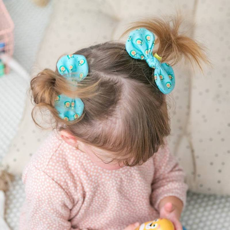 Beter Mr. Wonderful Elástico é um acessório infantil com um laço de tecido verde claro e um divertido estampado de abacates. Contém 2 elásticos.
