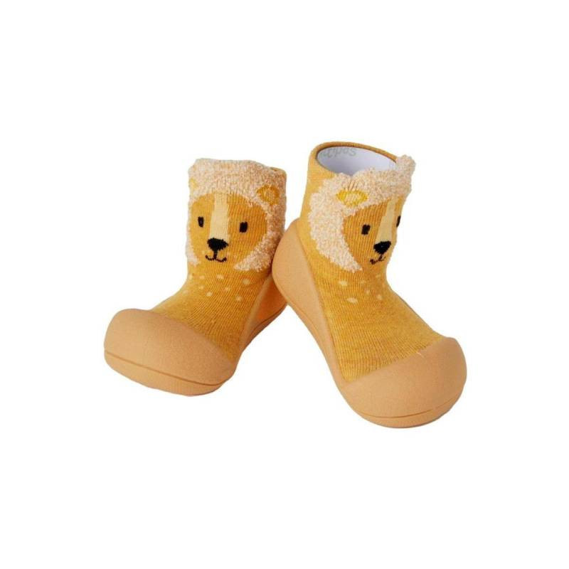 Attipas Zootopia Lion Yellow é um sapato de bebé totalmente responsável e ergonómico projetado com base em uma meia e uma sola antiderrapante que se ajusta completamente ao pé do bebé como se fosse uma segunda pele.