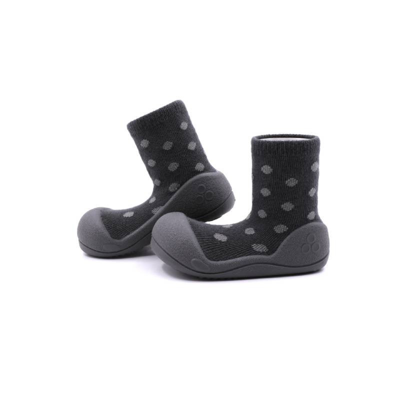 Attipas Dotdot Charcoal Cinza Tam. 20 é um sapato de bebé totalmente responsável e ergonómico projetado com base em uma meia e uma sola antiderrapante que se ajusta completamente ao pé do bebé como se fosse uma segunda pele.