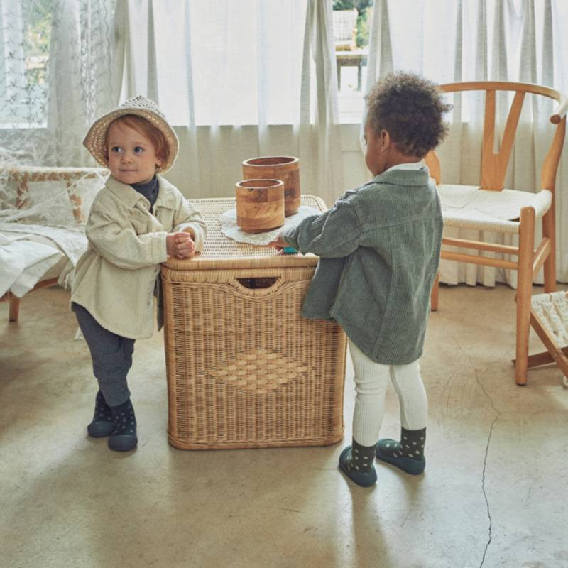 - Feito com tecido de algodão sustentável e ecologicamente seguro para os pés do seu pequeno.