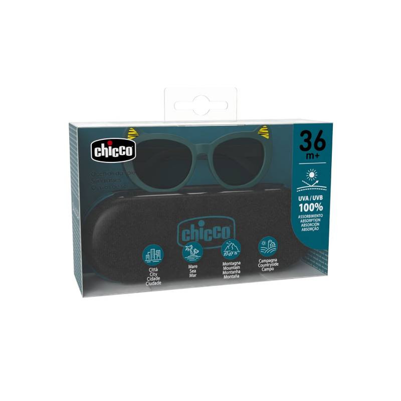 Chicco Óculos de Sol Gato Azul +36M apresentam um design cat eye e 100% de absorção UVA/UVB para proteger os olhos delicados dos bebés a partir dos 36 meses.