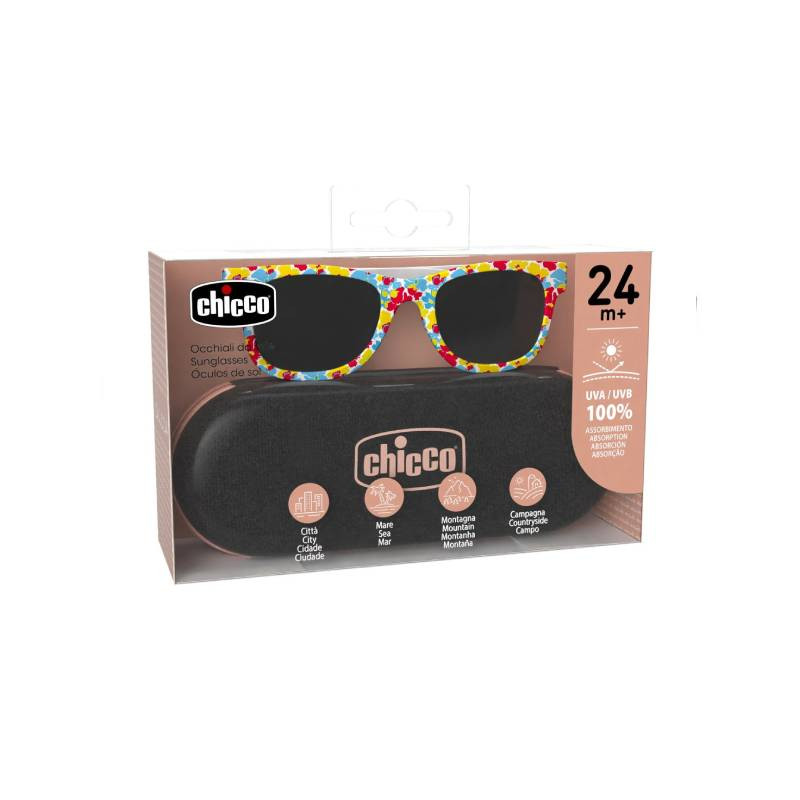 Chicco Óculos de Sol Flores +24M apresentam um design cool e 100% de absorção UVA/UVB para proteger os olhos delicados dos bebés a partir dos 24 meses.