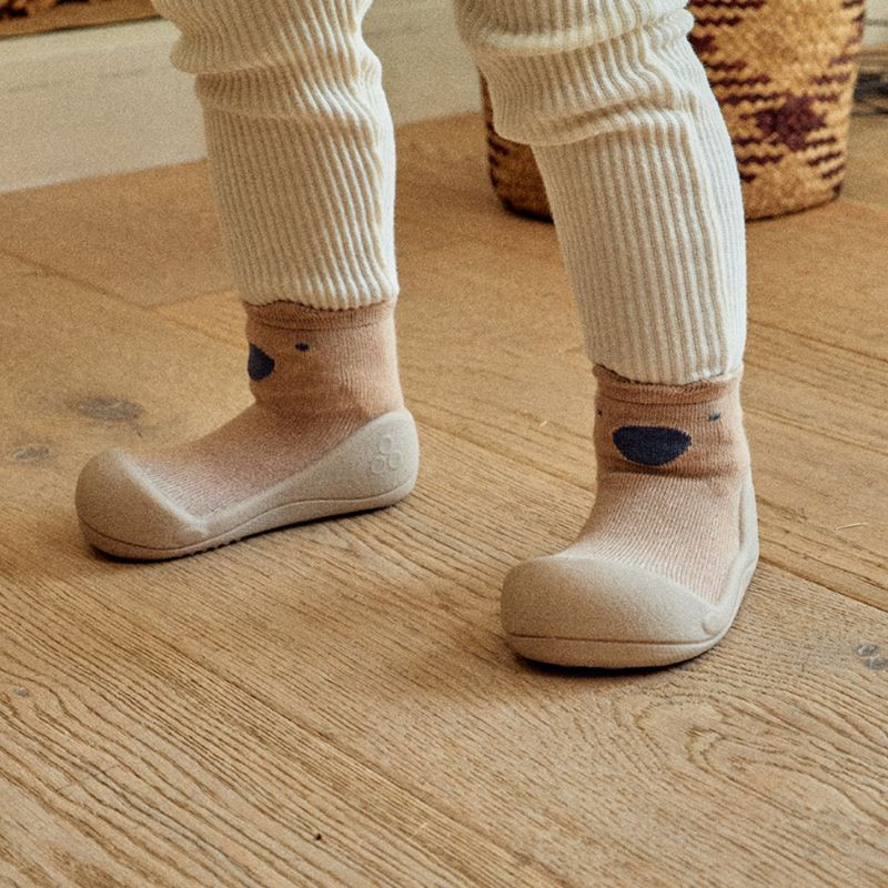 Attipas Animal Beige é um sapato de bebé barefoot e ergonómico projetado com base em uma meia e uma sola antiderrapante que se ajusta completamente ao pé do bebé como se fosse uma segunda pele.
