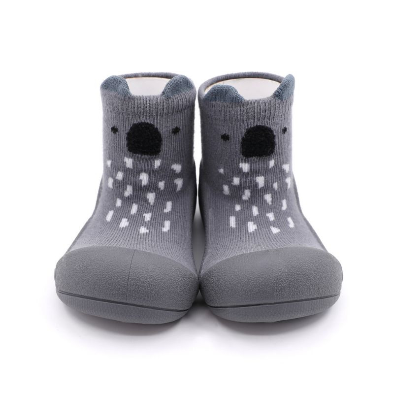 Attipas Koala Grey é um sapato de bebé barefoot e ergonómico projetado com base em uma meia e uma sola antiderrapante que se ajusta completamente ao pé do bebé como se fosse uma segunda pele.