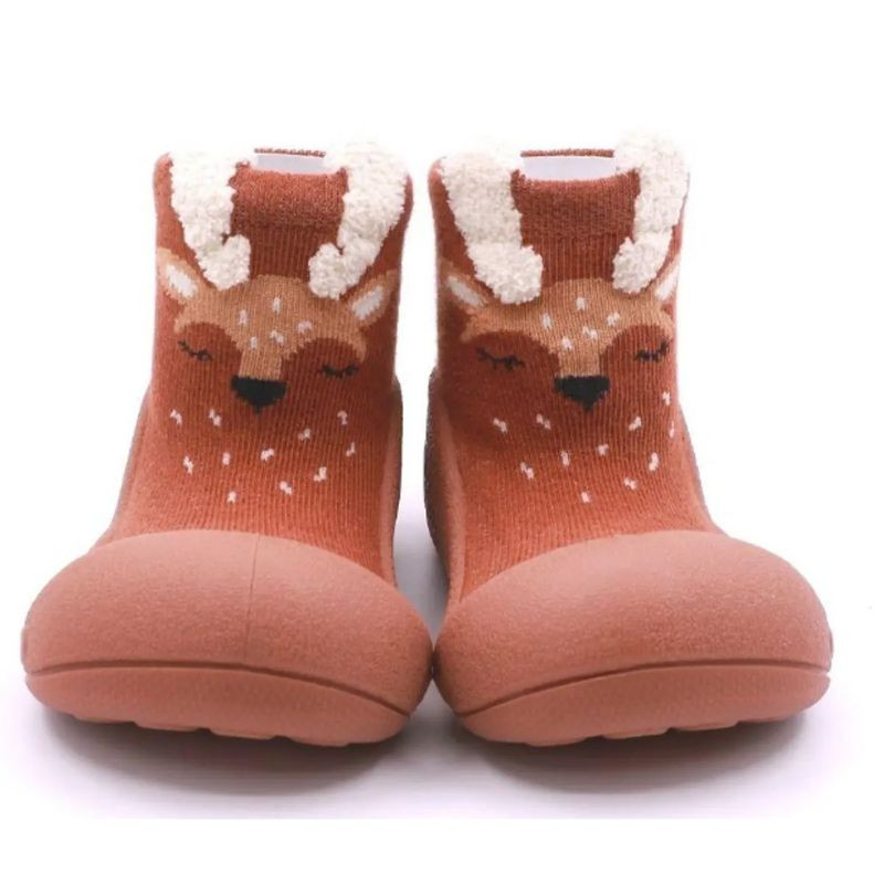 Attipas Zootopia Deer Brown é um sapato de bebé barefoot e ergonómico projetado com base em uma meia e uma sola antiderrapante que se ajusta completamente ao pé do bebé como se fosse uma segunda pele.