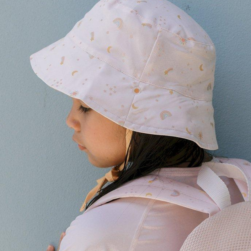 Com estampados adoráveis de arco-íris, estrelas e sóis o Chapéu Reversível Starlight Monnëka é perfeito para proteger a cabeça dos bebés a partir dos 6 meses, enquanto estão ao ar livre. Ideais para a praia, piscina ou passeios ao sol, são um acessório indispensável neste verão.