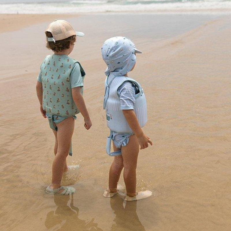 O Colete Flutuante Aprendizagem Jeallyfish Saro é a escolha ideal para o teu pequeno aprender a nadar de forma segura e confortável. Feito com materiais reciclados, é suave e perfeito para a praia ou piscina!