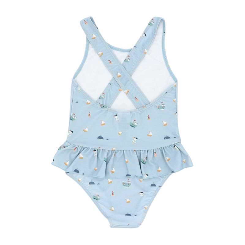 Com tecido que protege dos raios solares, este Fato Banho Cruzado Folhos Fishing Boat Monnëka garante conforto e segurança para os mais pequenos nos dias de verão. Estampado divertido para um look cheio de estilo!