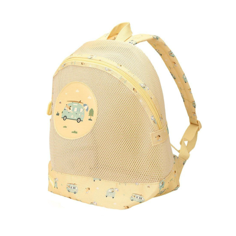 Com estampado de Caravanas a Mochila Infantil Anti-Areia Surf Van Monnëka é ideal para levar os brinquedos e acessórios do teu pequeno à praia ou à piscina, mantendo o interior limpo e livre de areia.
