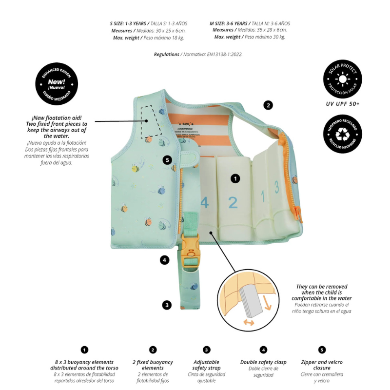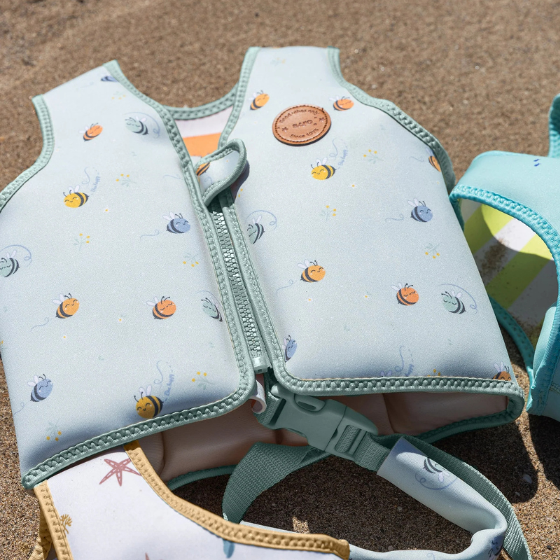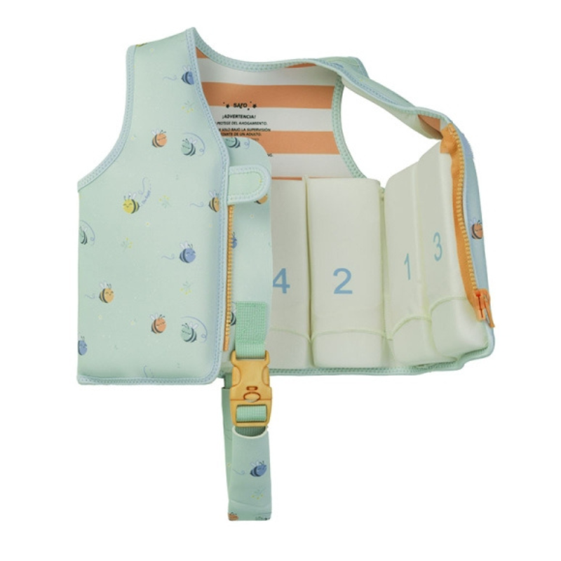 O Colete Flutuante Aprendizagem Bee Happy Saro é a escolha ideal para o teu pequeno aprender a nadar de forma segura e confortável. Feito com materiais reciclados, é suave e perfeito para a praia ou piscina!