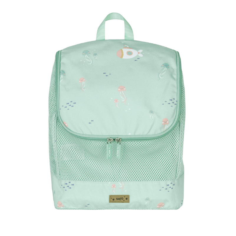 Com a Mochila Jeallyfish da Saro, a areia fica na praia, não em tua casa. Graças ao seu fundo em rede, a humidade e os grãos de areia que se agarram aos brinquedos ficam para trás.