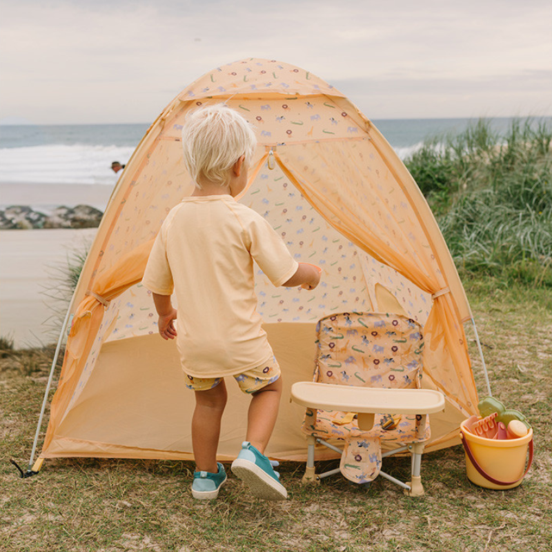 Para a praia, para a piscina, para o parque. A tenda que protege enquanto eles brincam.