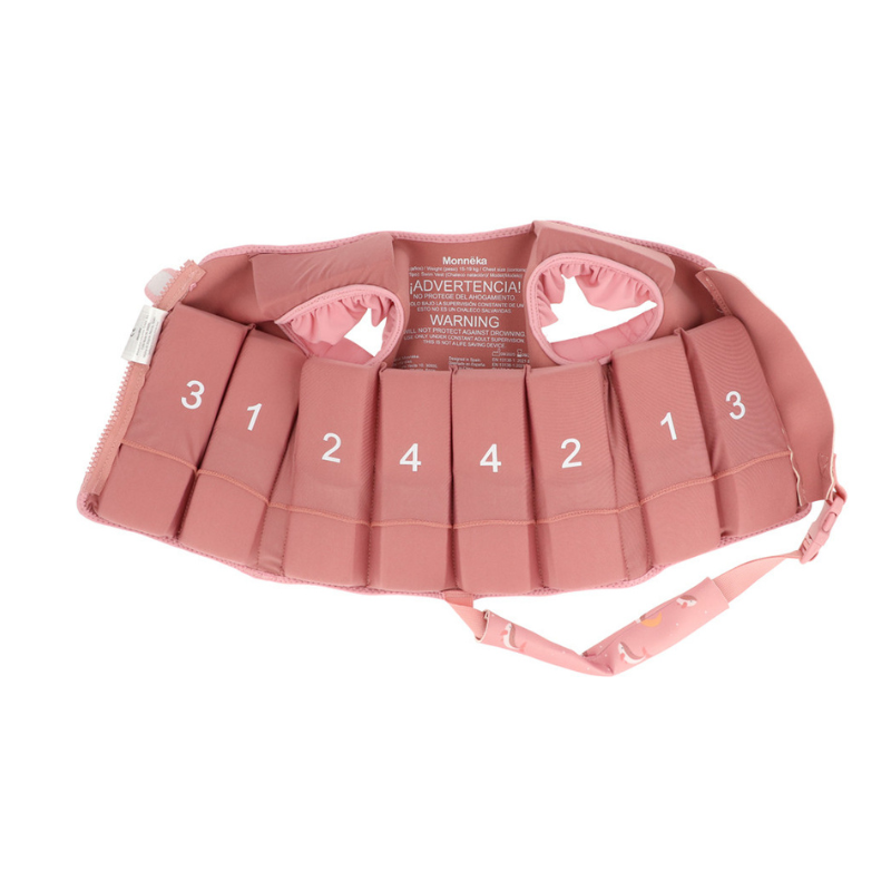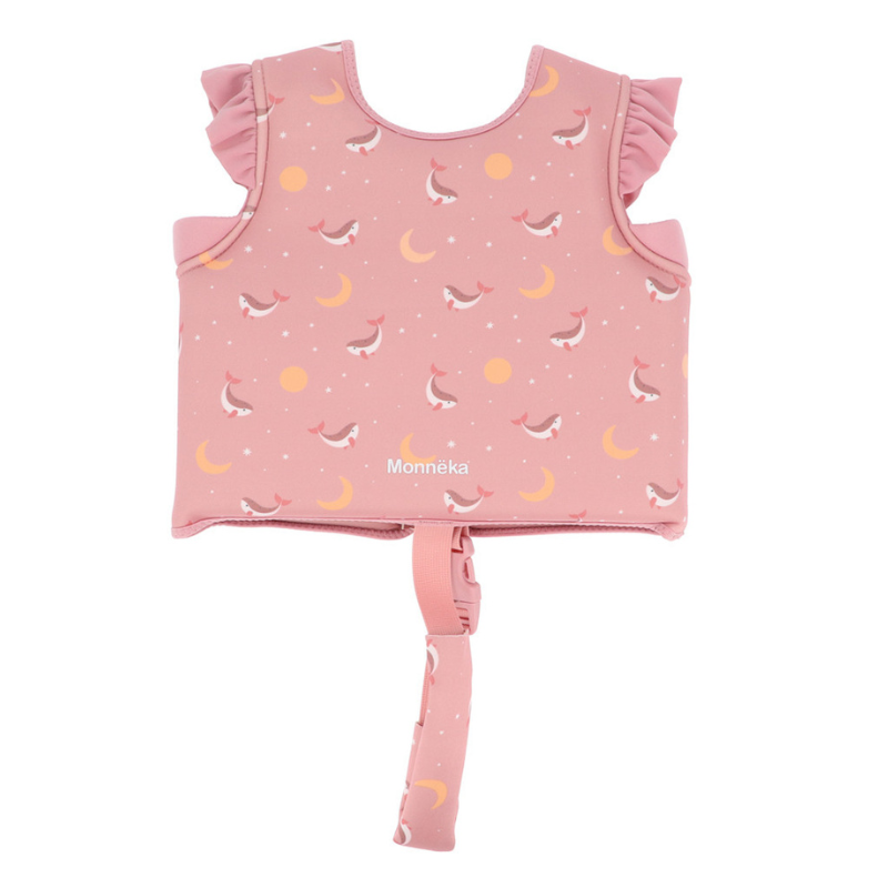 O Colete Flutuante da Coleção Verão 2026 Monnëka foi desenhado para os pequenos que estão a dar os primeiros passos dentro de água. Com flutuadores que se vão tirando um a um, à medida que a criança ganha segurança. Com uma fita entre as pernas que impede o colete de subir. Com proteção nas axilas, fecho robusto e um design que respeita os movimentos dos braços.