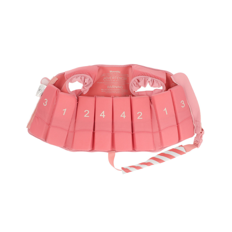 O Colete Flutuante da Coleção Verão 2026 Monnëka foi desenhado para os pequenos que estão a dar os primeiros passos dentro de água. Com flutuadores que se vão tirando um a um, à medida que a criança ganha segurança. Com uma fita entre as pernas que impede o colete de subir. Com proteção nas axilas, fecho robusto e um design que respeita os movimentos dos braços.