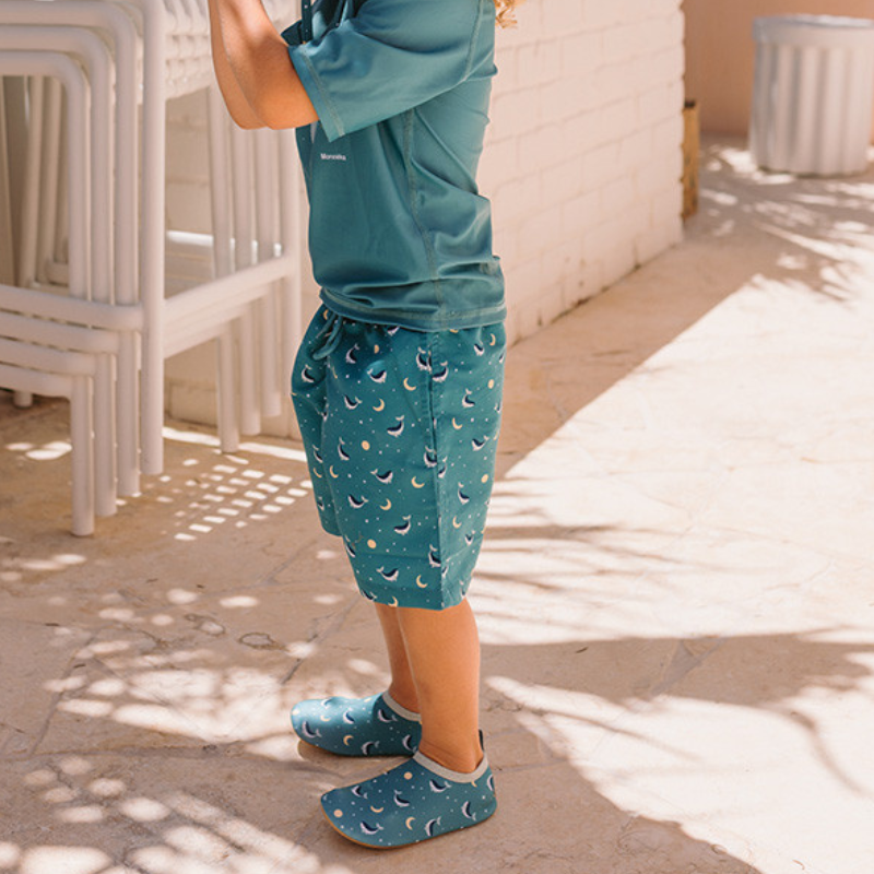 O calção que eles vão querer vestir todos os dias de verão. Leve, seca num instante e protege do sol.