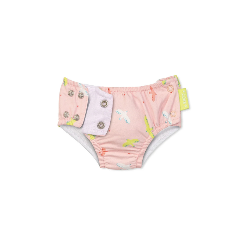 A Fralda Cueca de Banho Tropicool da Saro foi feita para os pequenos que estão a começar a explorar a água. Substitui a fralda normal e não deixa entrar água. O tecido é leve, não pesa quando molhado, e tem proteção UV50+ – porque a pele do bebé merece cuidado mesmo dentro de água.