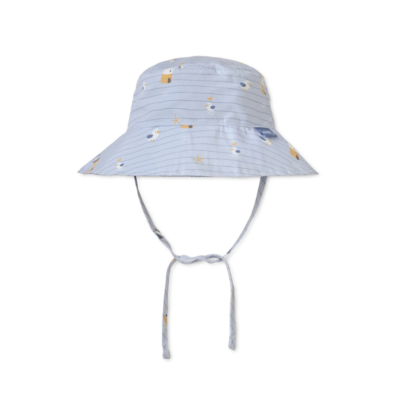 O Chapéu de Proteção Solar Navy Hugs da Saro foi feito para os dias de praia, parque e jardim. A viseira larga protege a nuca e o rosto, os cordões mantêm-no ajustado, e o tecido UPF50+ bloqueia os raios solares. E ainda é reversível – dois chapéus num só.