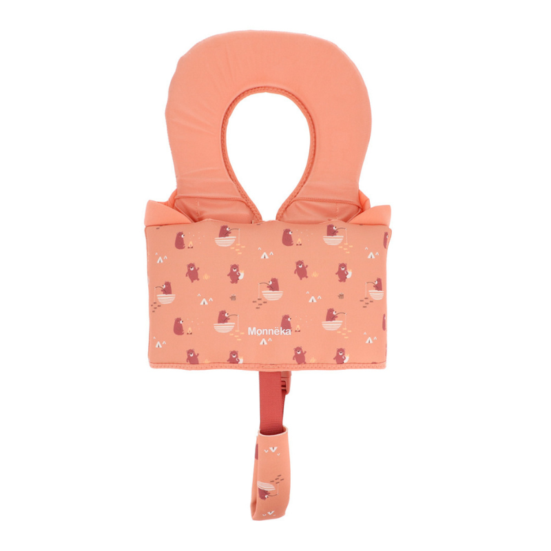 Colete flutuador Monnëka para crianças 2-3 anos (15-19 kg). Com 24 elementos de flutuação removíveis, cinta entrepernas e proteção nas axilas. Certificado EN13138-1.