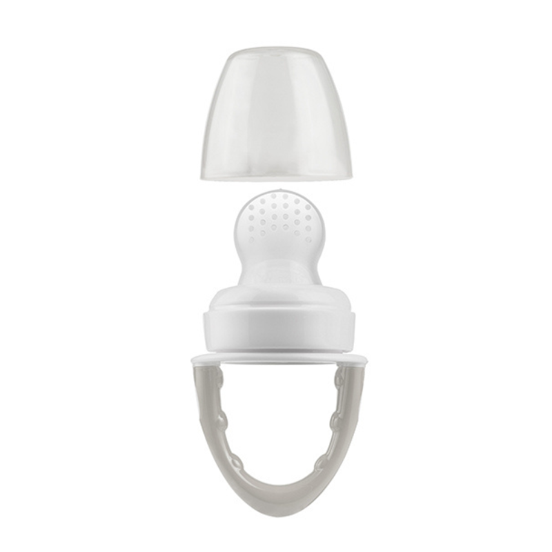 Alimentador de silicone sem rede para introduzir sólidos com segurança a partir dos 4 meses. Permite ao bebé explorar sabores sem risco de asfixia. Fácil de limpar, serve também como mordedor. Silicone durável, sem BPA.