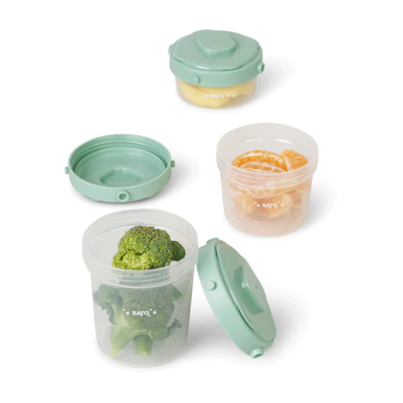 Este Conjunto de 3 Recipientes para Alimentos Saro são práticos, empilháveis e sem risco de fugas. A solução ideal para manter a alimentação do bebé organizada e sempre pronta!