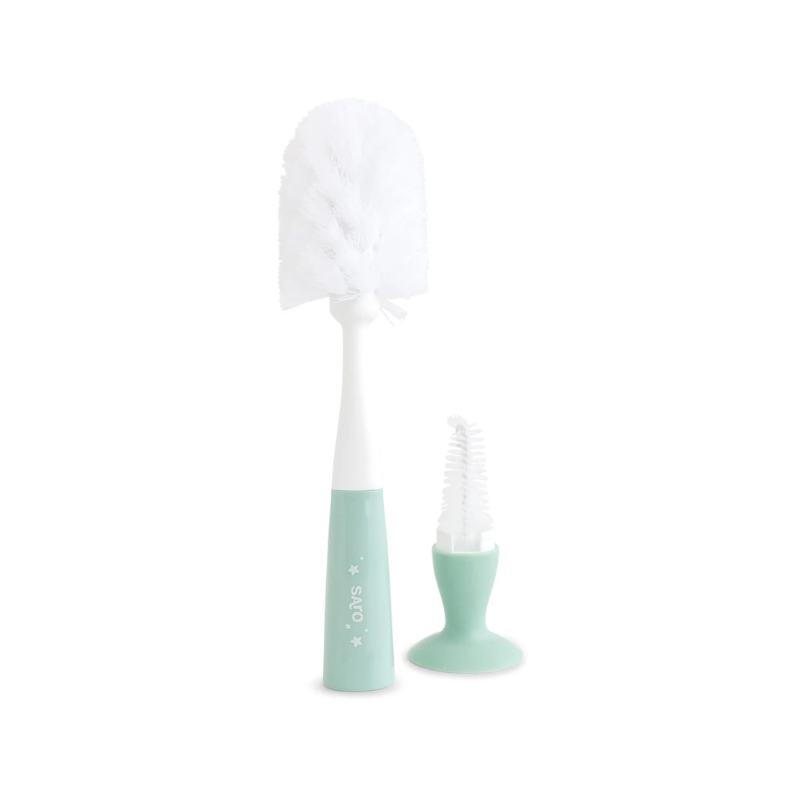 Saro Escovilhão Limpeza Biberão Verde com cerdas suaves em nylon que limpam eficazmente sem riscar. Com escova para tetinas integrada, base com ventosa e apto para máquina de lavar loiça.