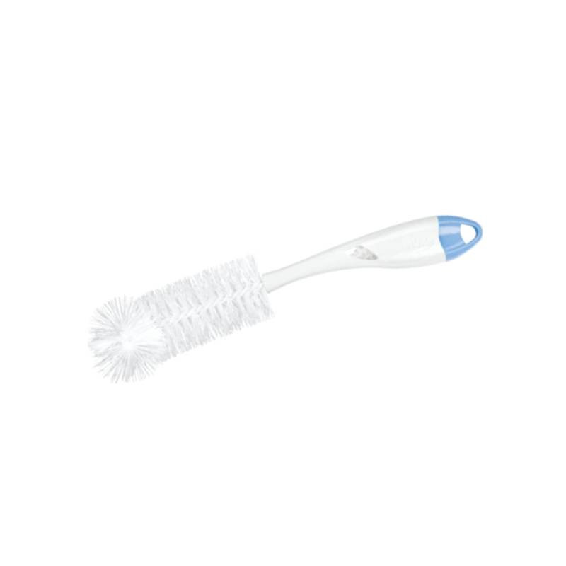 - O orifício no cabo do escovilhão para biberões permite a secagem rápida do escovilhão para tetinas e tem um anel para pendurar.