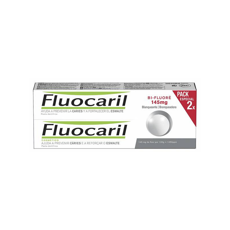 Fluocaril Pasta Dentífrica Branqueadora Duo Preço Especial é um pack composto por duas embalagens de 75ml. Fluocaril Pasta Dentífrica Branqueadora é uma pasta dentífrica branqueadora que remove as manchas superficiais, ao mesmo tempo que promove um brilho saudável e mantém o branco natural.