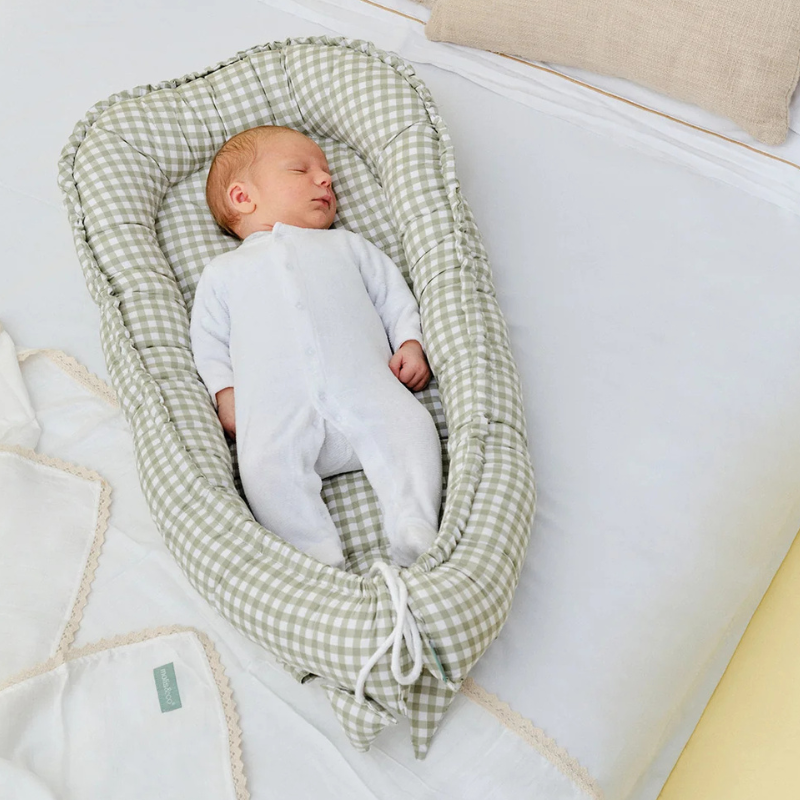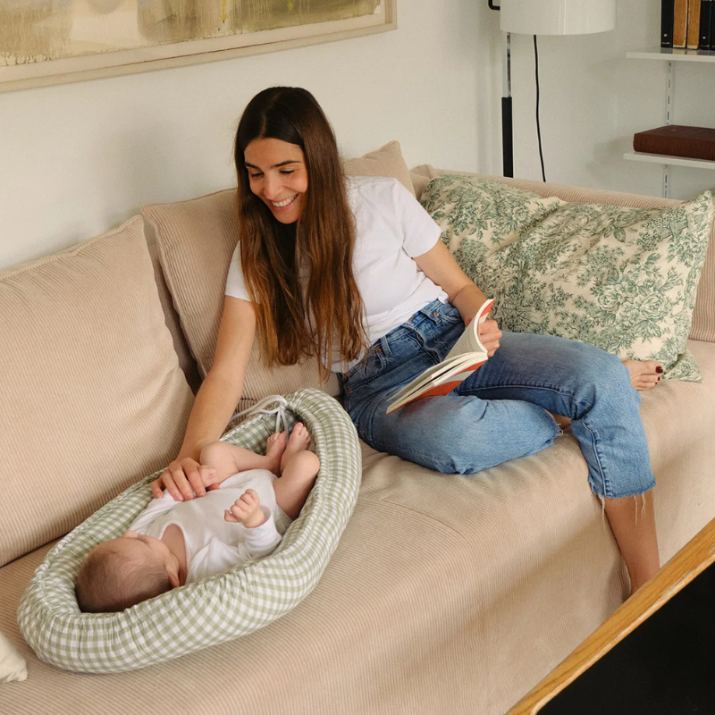 O aconchego que o teu recém-nascido precisa! Este ninho envolve suavemente o bebé, criando uma sensação de conforto e segurança. Com borda acolchoada e sem elementos soltos, é perfeito para sestas diurnas, brincadeiras calmas ou mudas de fralda (sob supervisão). Portátil, 100% algodão sustentável e feito com materiais reciclados.