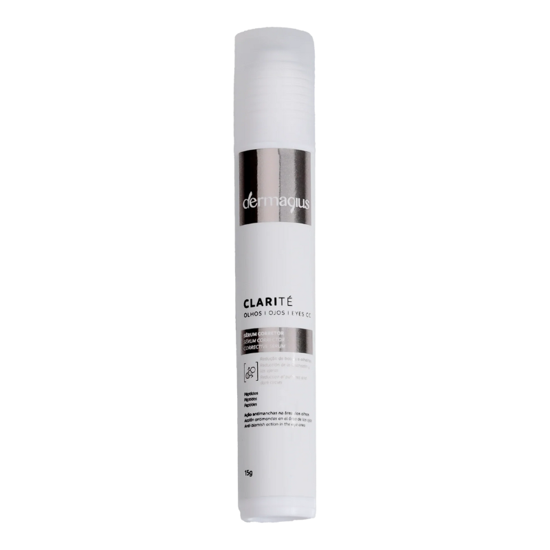 O Clarité Sérum Olhos da Dermagius é um corretor avançado para o contorno dos olhos, com cinco ativos poderosos que clareiam olheiras escuras (vasculares e melânicas) e reduzem bolsas e edemas. Oferece hidratação profunda, luminosidade e combate rugas e rídulas, proporcionando um olhar rejuvenescido e descansado.
