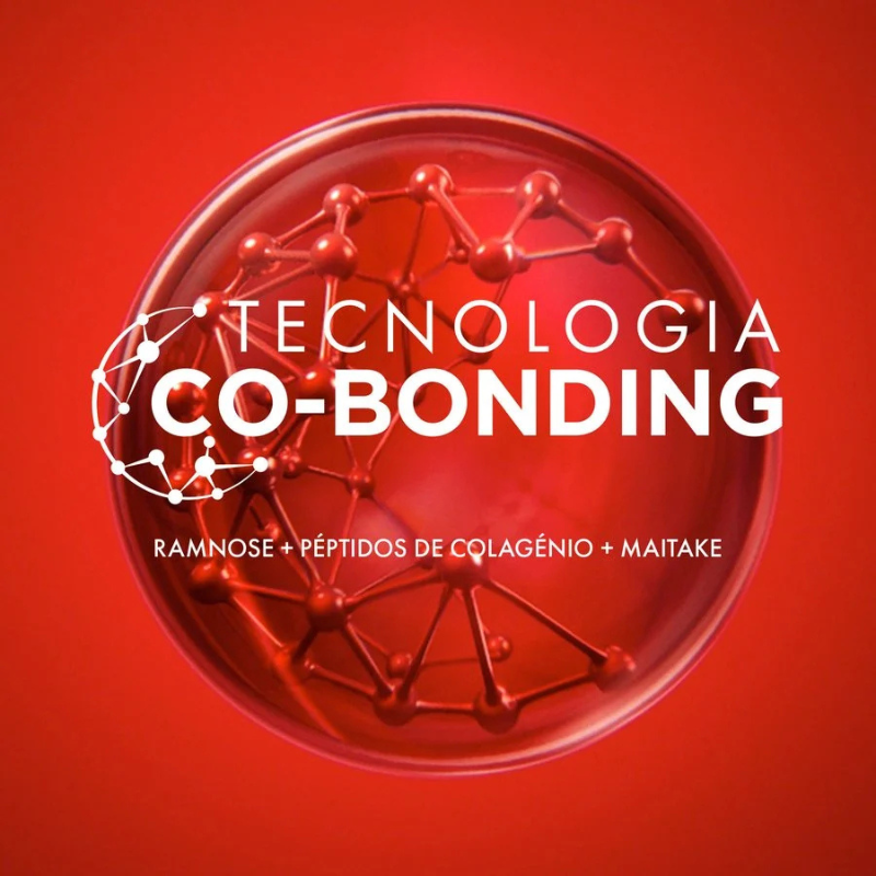 Tecnologia Co-Bonding exclusiva: Combina Ramnose, Péptidos e Cogumelo Maitake para reforçar as diferentes famílias de colagénio (I, III, IV, V e VII), fortalecendo a estrutura da pele.