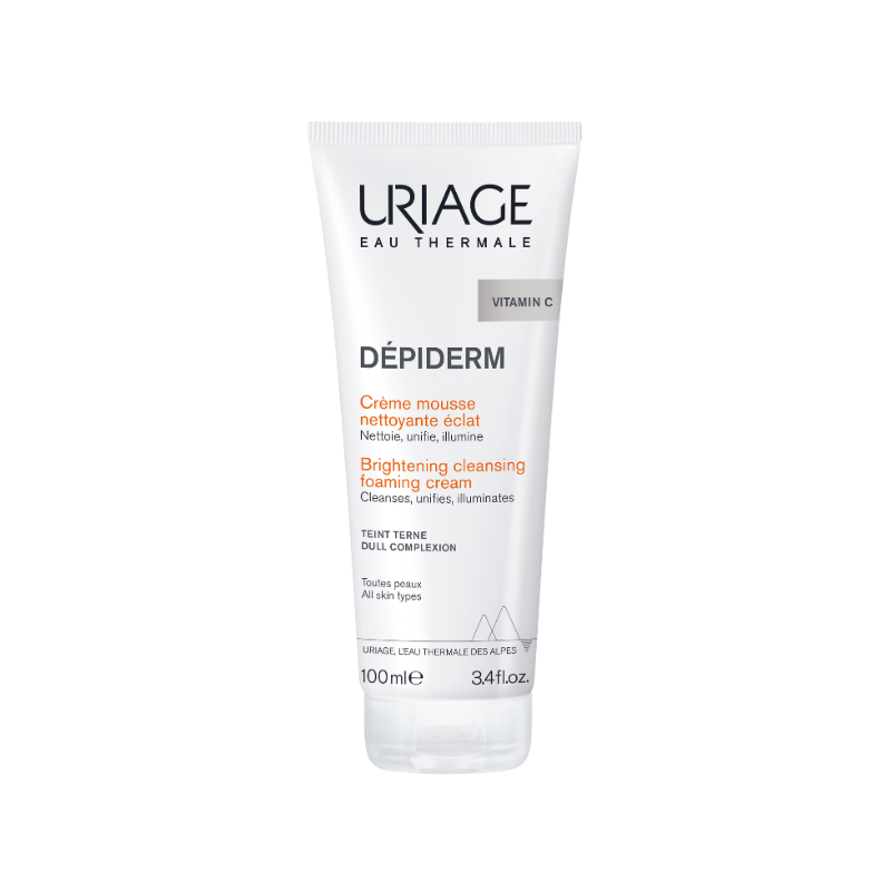 Uriage Dépiderm é um creme limpeza anti-manchas que combina uma espuma cremosa e um perfume floral para uma aplicação sensorial, deixando a pele fresca, suave e luminosa desde a primeira utilização.