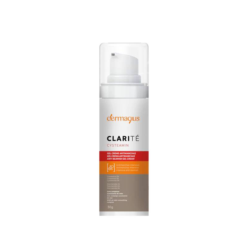 Dermagius Clarité Cysteamin Gel Creme Antimanchas 30g é um tratamento intensivo para o melasma que proporciona uma hidratação profunda e uma luminosidade natural, deixando a pele com um aspeto revitalizado.