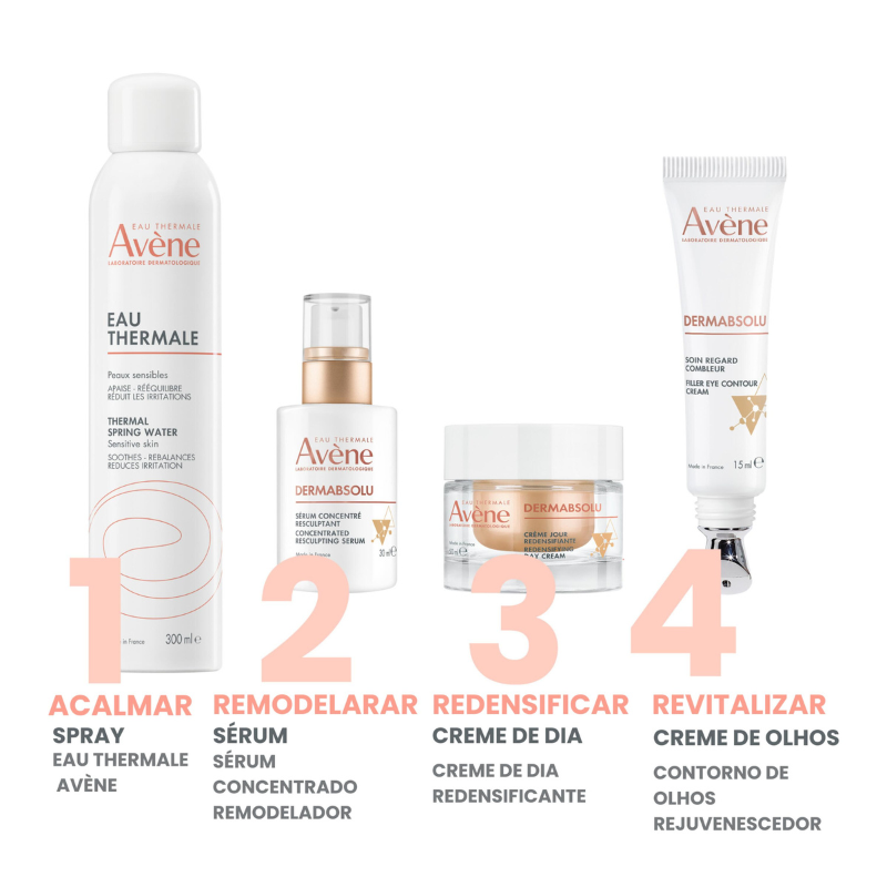 Para combater este efeito de forma profunda e sensível, os Avène criaram o Creme de Dia Redensificante Dermabsolu. Com um trio de ativos de alta precisão (Bakuchiol 1%, Pró-Ceramidas 2% e Polifenóis de Baunilha), este creme não é apenas um hidratante – é um tratamento que trabalha para redensificar a tua pele, devolvendo-lhe a estrutura, o volume e o brilho juvenis.