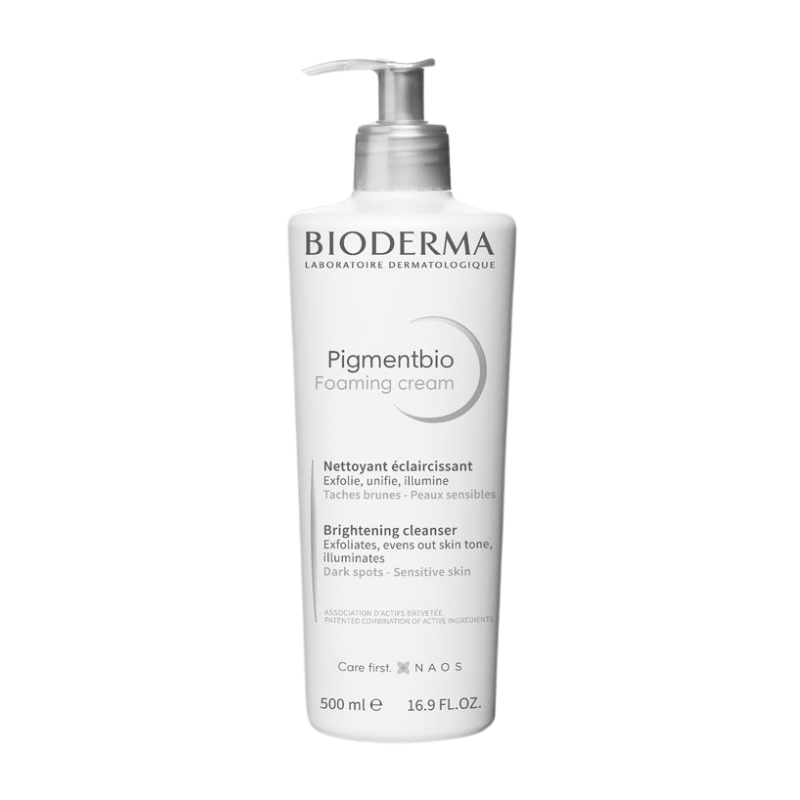 Creme de limpeza esfoliante Bioderma Pigmentbio. Reduz manchas, uniformiza o tom da pele e restaura a luminosidade. Textura cremosa, sem sabão e hidratante.