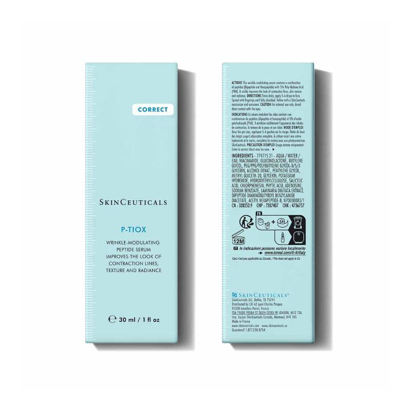SkinCeuticals P-TIOX é um sérum antirrugas formulado à base de péptidos, clinicamente comprovado para reduzir o aparecimento de 9 tipos de rugas de expressão, melhorando a textura e a luminosidade.