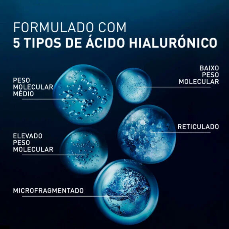 Este creme rico em múltiplos tipos de ácido hialurónico oferece uma hidratação profunda e duradoura, ajudando a alisar, preencher e melhorar a textura da pele desde a primeira aplicação.