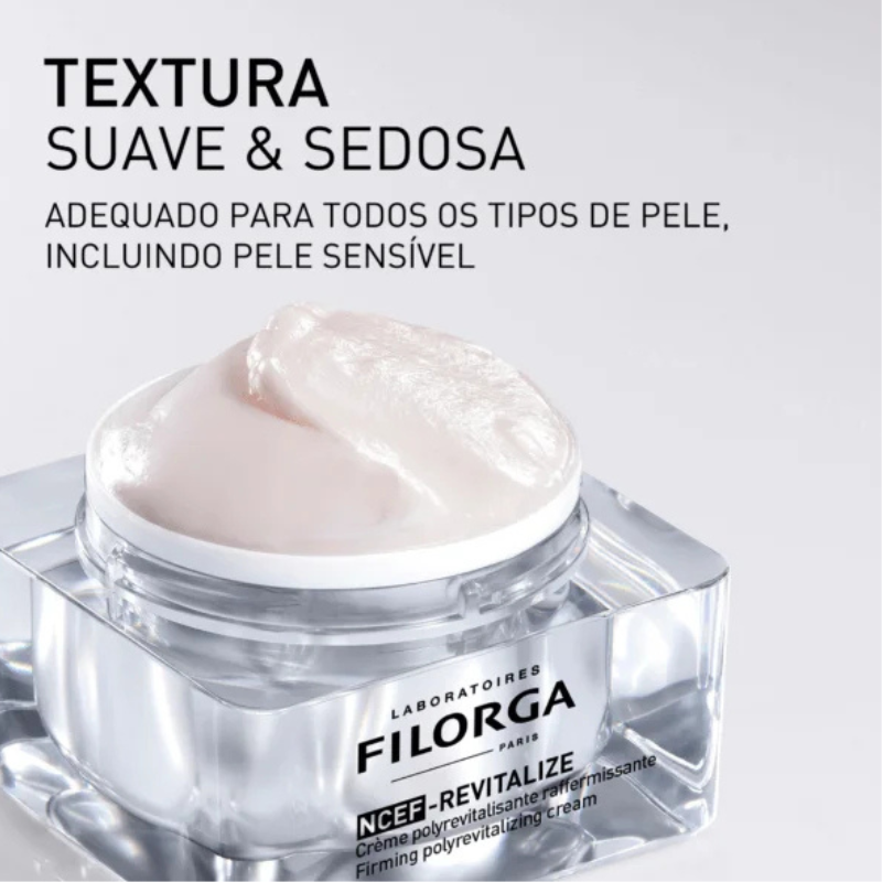 O Filorga Coffret NCEF-Revitalize é o presente ideal para quem procura um cuidado completo antienvelhecimento de elevada eficácia. Composto pelo icónico NCEF-Revitalize Sérum (30 ml) e uma oferta do NCEF-Revitalize Creme (15 ml), este coffret proporciona uma ação polirrevitalizante global, atuando sobre rugas, firmeza, luminosidade e textura da pele.
