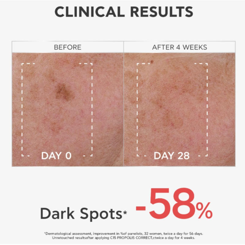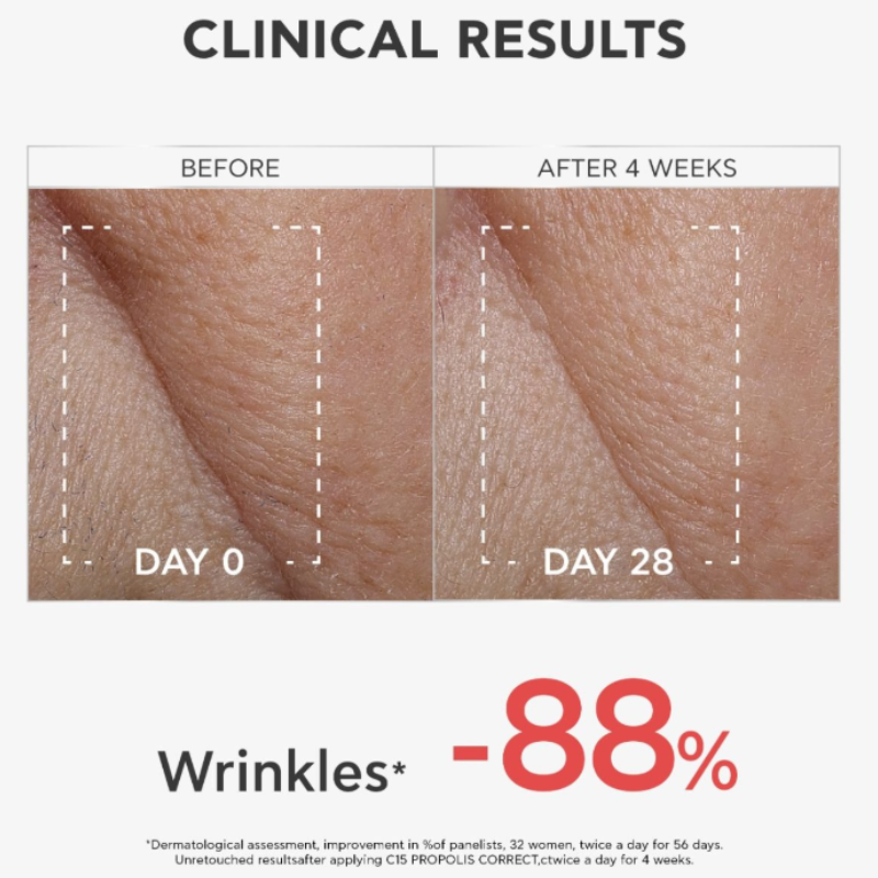 - Propriedades regeneradoras: O Própolis, conhecido pelas suas propriedades reparadoras, ajuda a acalmar e a regenerar a pele, potenciando o efeito antienvelhecimento.