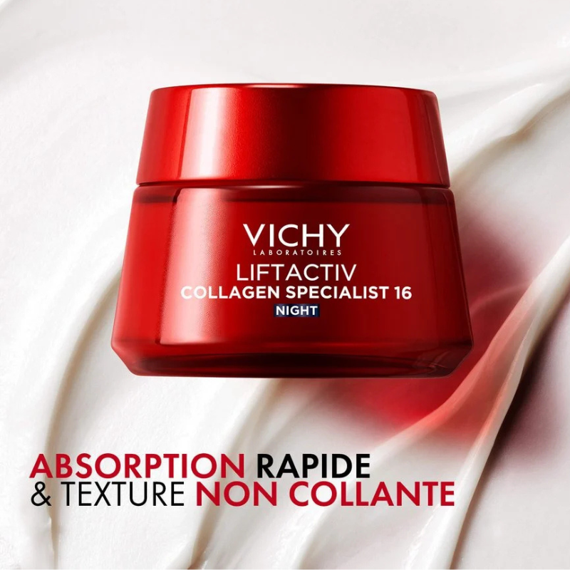 O Liftactiv Collagen Specialist 16 é o primeiro creme de noite da Vichy com tecnologia Co-Bonding, projetado para potenciar a produção de colágenio e corrigir até 16 sinais de envelhecimento.