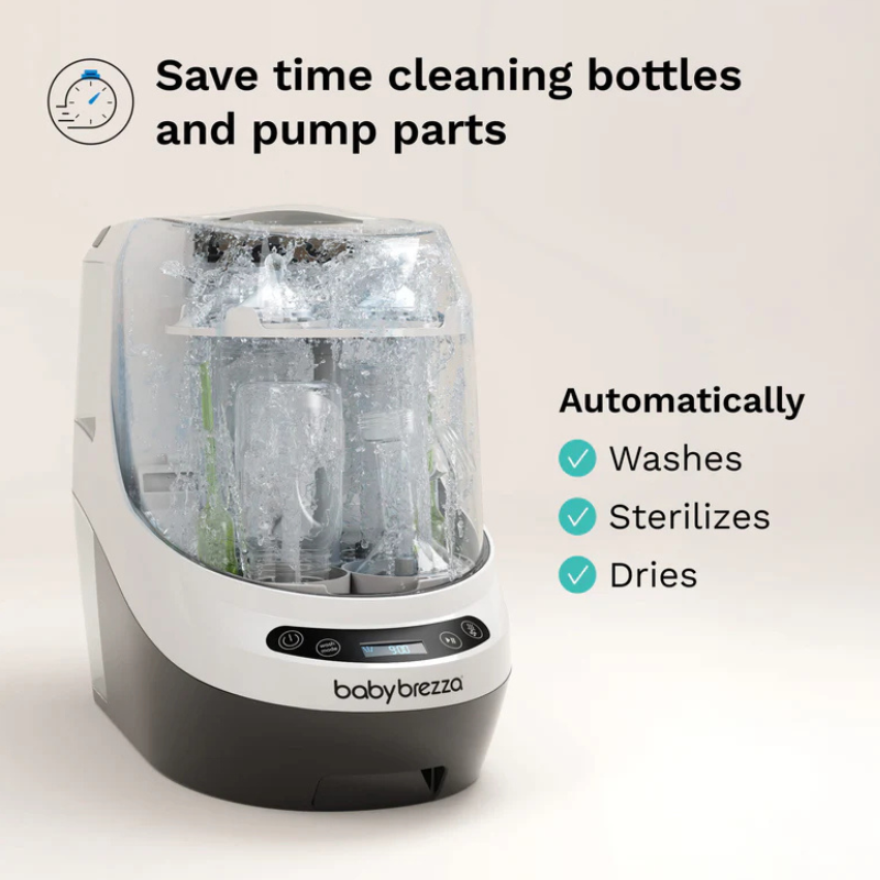 O Baby Brezza Bottle Washer Pro é o primeiro eletrodoméstico que lava, esteriliza e seca biberões e acessórios automaticamente, com um simples toque num botão É clinicamente comprovado que limpa melhor do que uma escova de biberões.