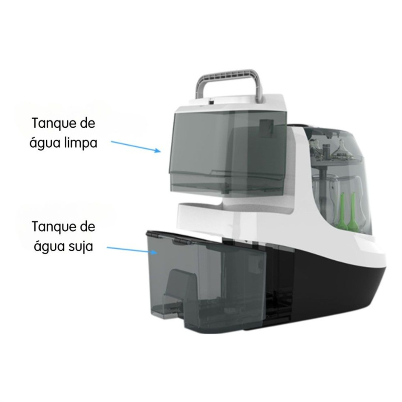 SEM INSTALAÇÃO: Funciona com 2 depósitos de água amovíveis (água limpa e água suja). Podes usá-lo em qualquer lugar da casa, sem necessidade de ligação à torneira .