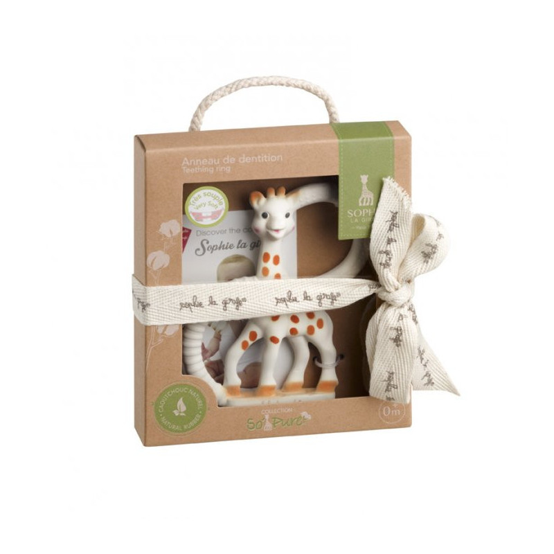 Sophie La Girafe So Pure Anel de Dentição Suave +0M é fabricado em borracha 100% natural e ideal para aliviar a dor do nascimento dos primeiros dentinhos.