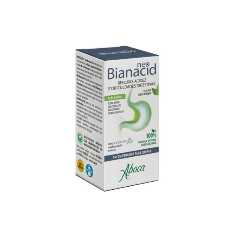 NeoBianacid Comprimidos Limão x14 é indicado para o tratamento do refluxo gastroesofágico e da dor de estômago (dispepsia dolorosa), caracterizados por regurgitação ácida, ardor, dor, tosse irritativa, disfonia.