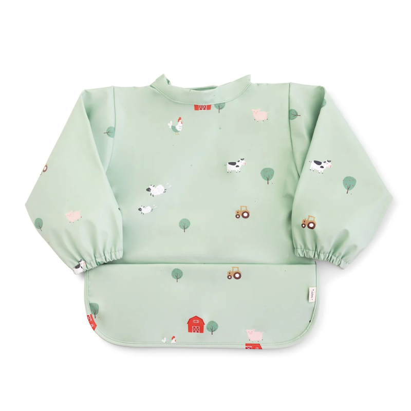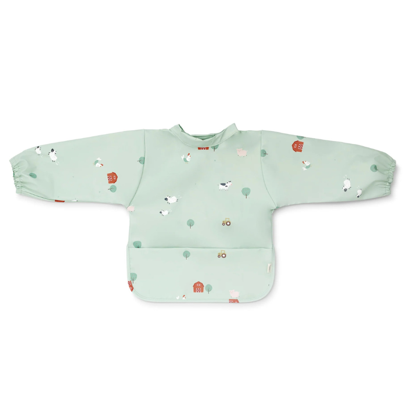 Saro Babete Impermeável Mangas Quinta Verde é ideal para manter a roupa do bebé limpa durante as refeições. Com fecho em velcro no pescoço, é fácil de ajustar, colocar e remover, oferecendo conforto e proteção extra.