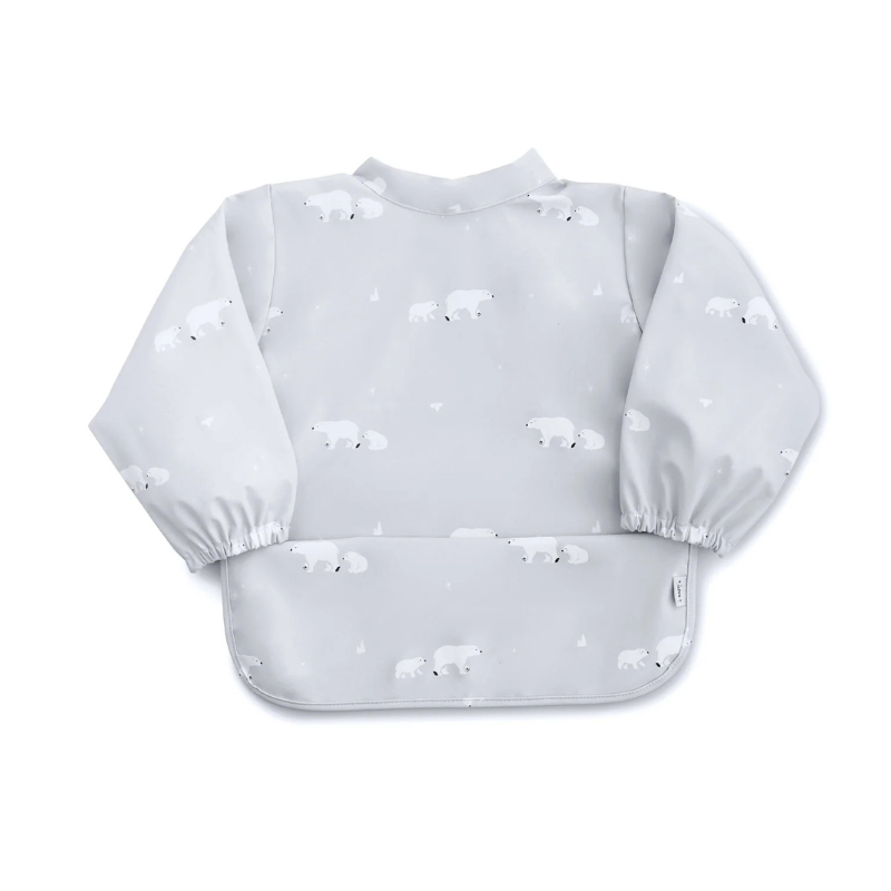 Com desenho divertido de pandas, a babete com mangas compridas é impermeável e ideal para proteger totalmente as roupas do bebé durante as refeições. Fácil de limpar e confortável.