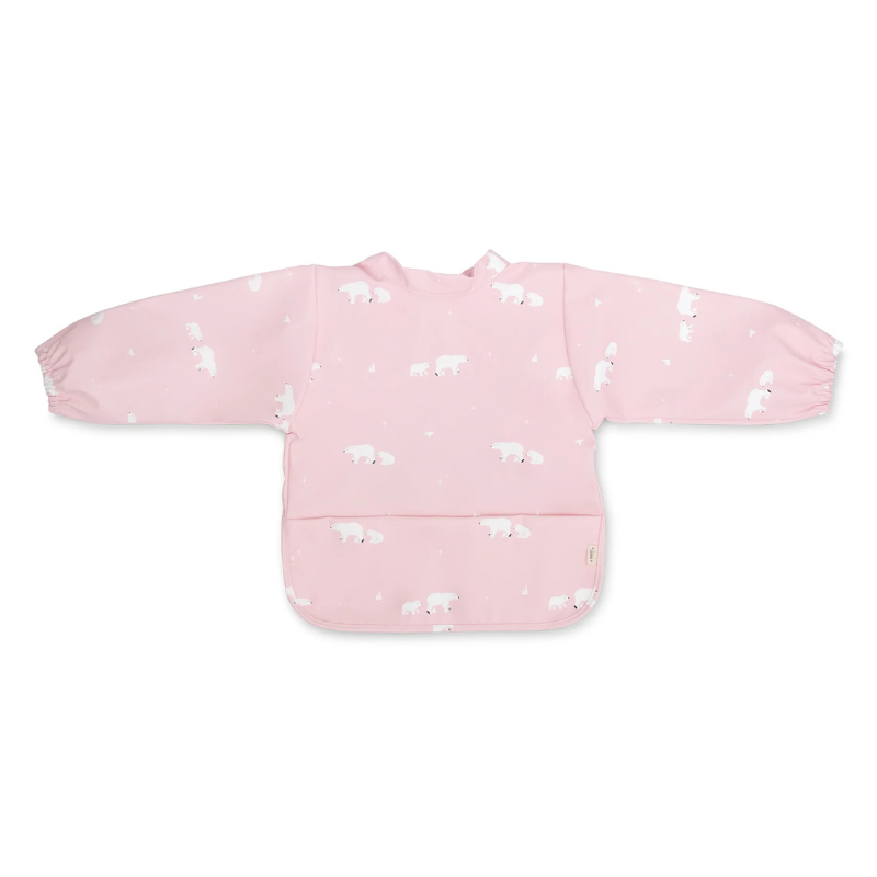 Com desenho divertido de pandas, a babete com mangas compridas é impermeável e ideal para proteger totalmente as roupas do bebé durante as refeições. Fácil de limpar e confortável.