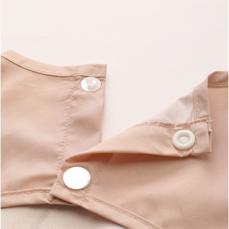Fecho ajustável: Dois botões de pressão permitem um ajuste seguro e confortável ao pescoço do bebé.